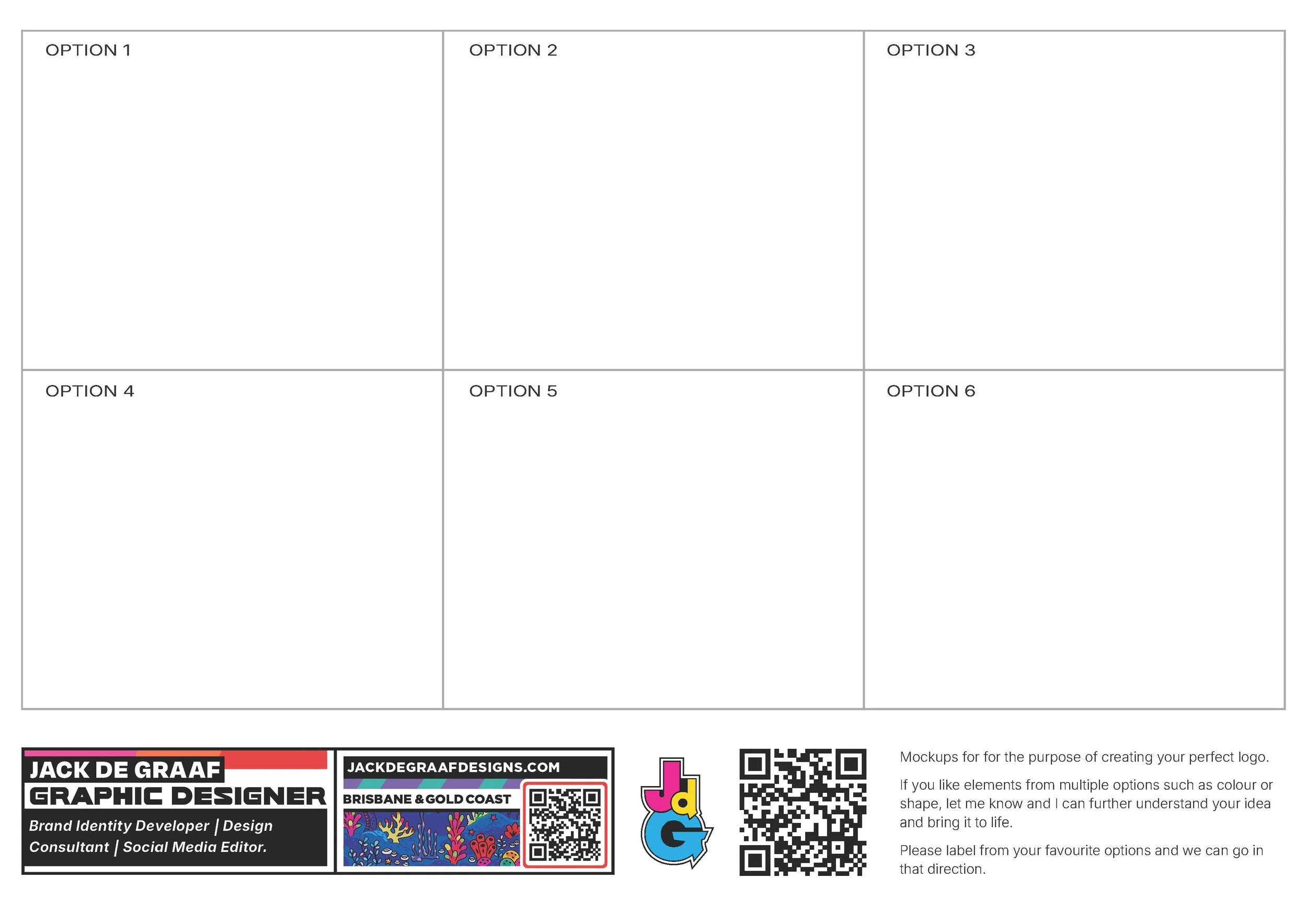 In order to present my ideas and designs to a client it is important that I have some structure. We all want peace of mind when asking for a logo or design & I’ve made these template sheets for viewing all the ideas in one spot.